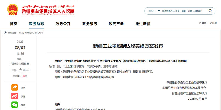為全面推進新時代國家“三基地一通道”建設,打造全國能源資源戰略保障基地,錨定碳達峰碳中和目標,堅持降碳、減污、擴綠、增長協同推進,推動制造業綠色低碳轉型,加快打造具有新疆特色的現代化產業體系,新疆自治區于近日發布《新疆維吾爾自治區工業領域碳...