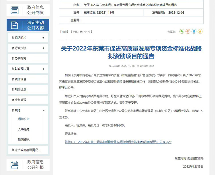 12月5日,東莞市市場監督管理局官網發布了《關于2022年東莞市促進高質量發展專項資金標準化戰略擬資助項目的通告》,擬對本市符合資助條件的項目進行資助。其中,東莞市正旭新能源設備科技有限公司憑借參與制定《金銀花空氣源熱泵干燥通過技術要求》國...