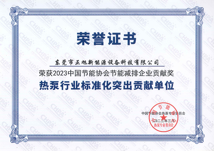 實力見證!正旭榮獲2023中國節能協會節能減排企業貢獻獎暨熱泵行業標準化突出貢獻單位