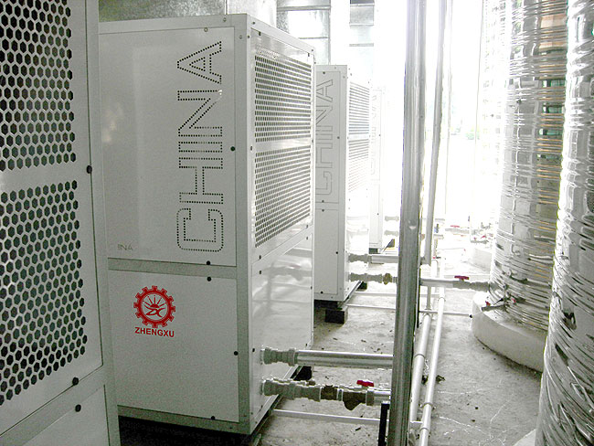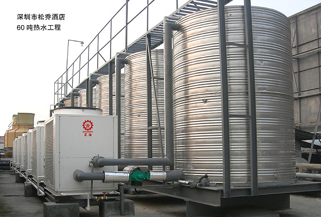 以北京某大學(xué)附屬學(xué)校為例,采用4臺15p循環(huán)熱泵熱水機(jī)組,每日生產(chǎn)180噸熱水,可滿足學(xué)校師生4500人洗浴。機(jī)組采用綠色能源不受資源限制,節(jié)能環(huán)保的熱水供應(yīng)裝置,使用少量的電能驅(qū)動壓縮機(jī)作功,吸取空氣中的熱量,可全天候24小時生產(chǎn)出50℃~60℃的熱水,全年COPh值高達(dá)3.0以上,對比電鍋爐節(jié)省70%電量,并且改造后校園再無煤灰污染,熱水供應(yīng)穩(wěn)定,使用和維護(hù)綜合費(fèi)用節(jié)省30%以上。