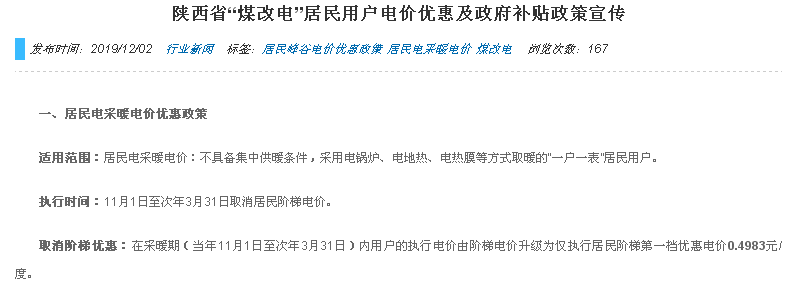 陜西省居民電采暖電價(jià)優(yōu)惠政策