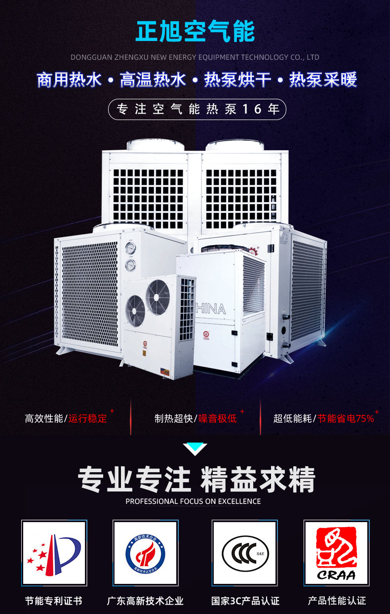 東莞市正旭新能源設備科技有限公司成立于2005年,系專業研發、生產、銷售高科技節能環保空氣源熱泵產品為一體的高新技術企業。公司擁有一流的熱泵研發檢測設備和先進的流水生產線、技術、管理、營銷及售后服務團隊。正旭熱泵烘干、熱水、高溫、采暖系列產品,具備節能、環保、安全、可靠等優勢,廣泛應用于工業、農業、服務業等領域。