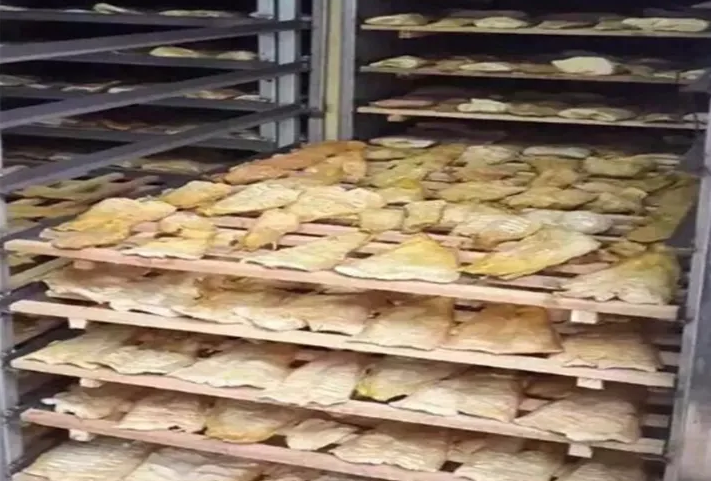 4. 將切開的茄子放在物料盤上準(zhǔn)備烘干,將烘干房初始溫度設(shè)定為58攝氏度,烘干12小時,無需翻動;