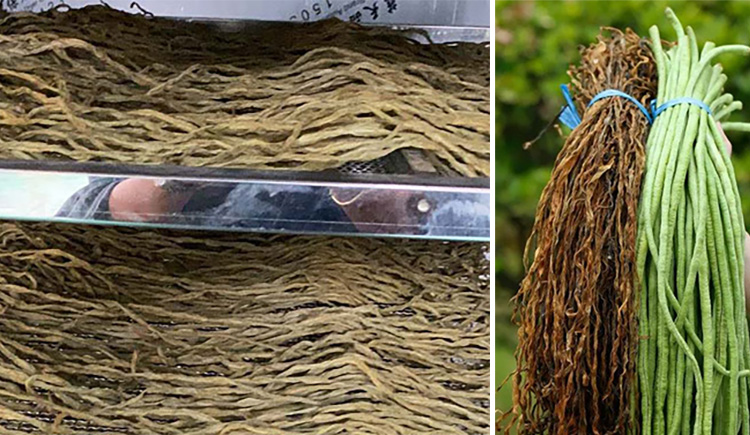 1.摘取新鮮無病蟲害、長直鮮嫩的豆角,放入清水中洗凈,去除頭尾瑕疵,如果是工廠生產就由專門的清洗機進行清洗;