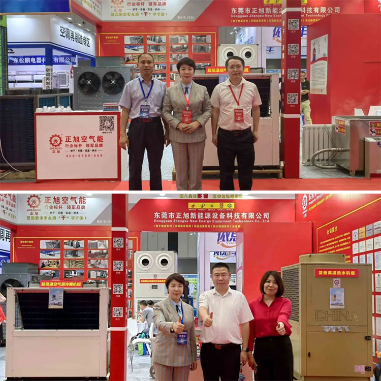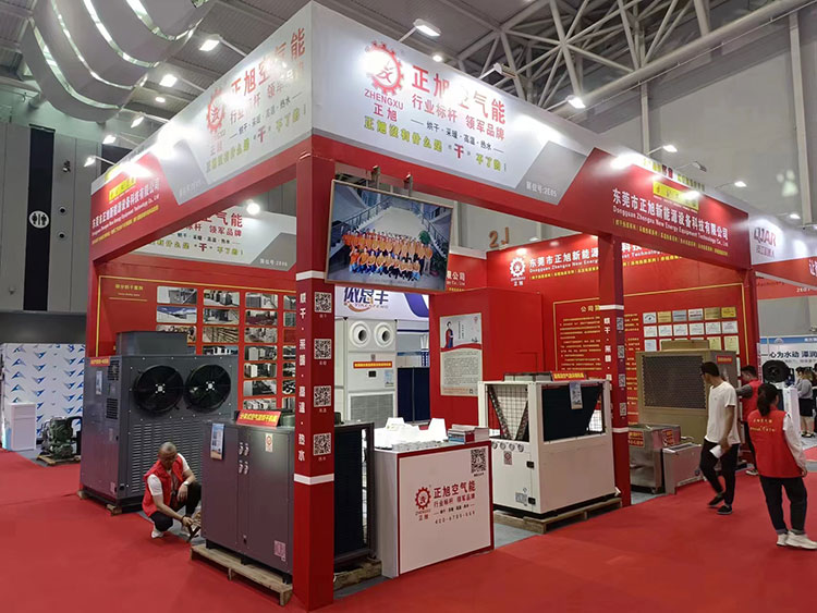 正旭通過開放式的展位形式,把富有吸引力的復疊高溫熱水機組,巧妙生動的展示在參觀者的眼前,全方位呈現了正旭熱泵產品的性能以及工藝,現場參觀客商云集,比肩繼踵,人氣爆棚!