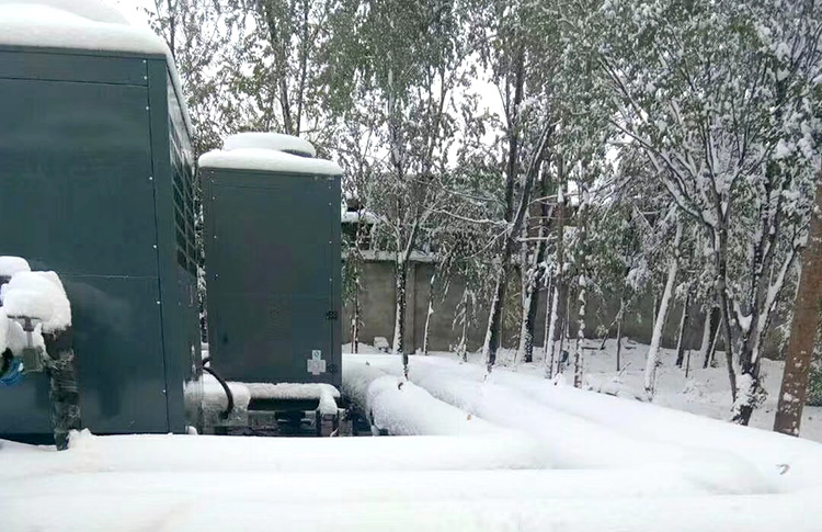 在防雨和防雪上,側出風的采暖熱泵產品會好一些,受雨雪的影響較?。豁敵鲲L的采暖熱泵產品,最好為其安裝防雪風罩,防止設備停機時,雪花落在主機的風葉上并堆積,從而造成主機的電機卡死燒壞。